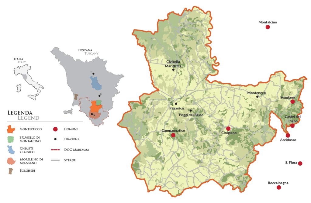 Montecucco lies between the Morellino di Scansano and Brunelli di Montalcino appellations, within the larger Tuscany appellation. Sangiovese is the main red grape in Montecucco and it is the most multi-tasking grape out there. You know it as the main grape in Chianti, and also Brunello di Montalcino, Rosso di Montalcino, Morellino di Scansano, Vino Nobile di Montepulciano and many other wines outside of Tuscany. And now you know it for the red wines of Montecucco.