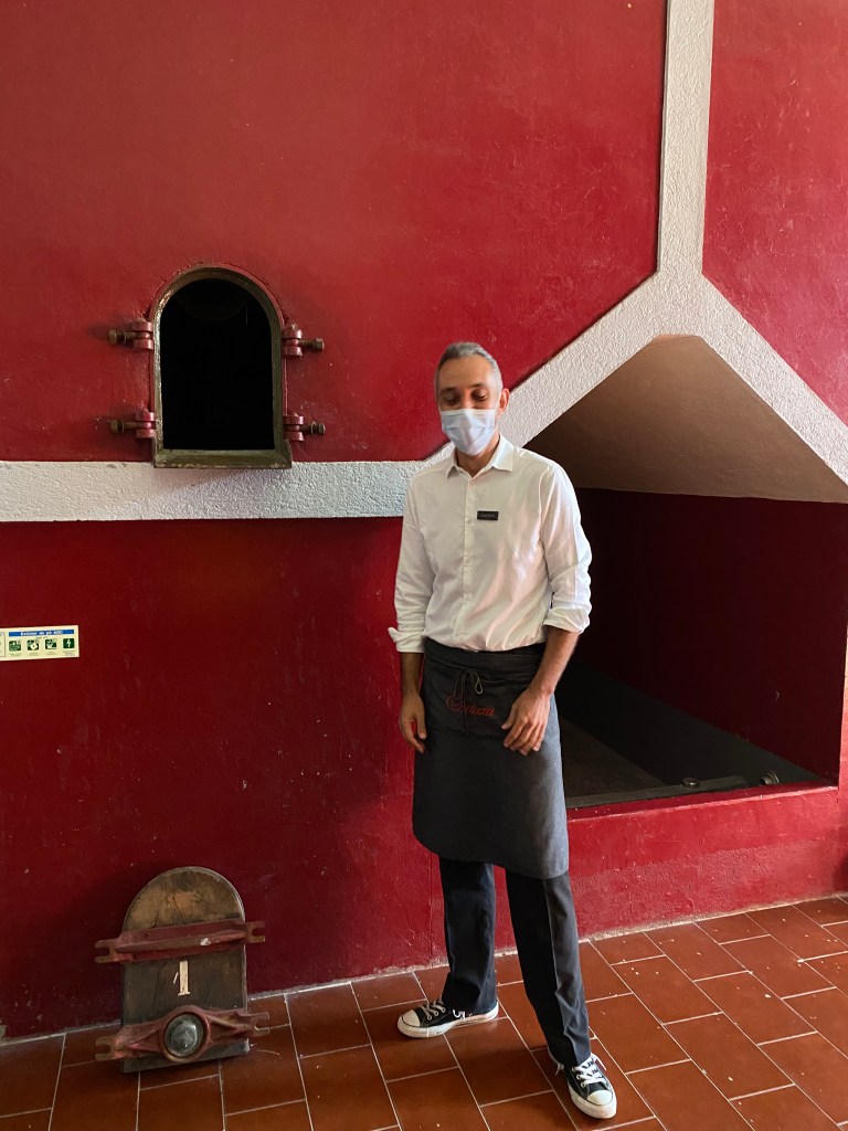 During our tour, we also got to see the old Algerian amphorae system (which Cartuxa last used in 1998). This is kind of complicated to explain, but Sergio saw my interest and took us “behind the scenes” to see where the whole clusters were put for foot-tredding, and explained how these were “self-wine-vinifiers.” There was very little control, but somehow, excellent wine was made! Cartuxa may bring them back to life with a visitor experience where people can get into the vats and do their own foot-stomping!
