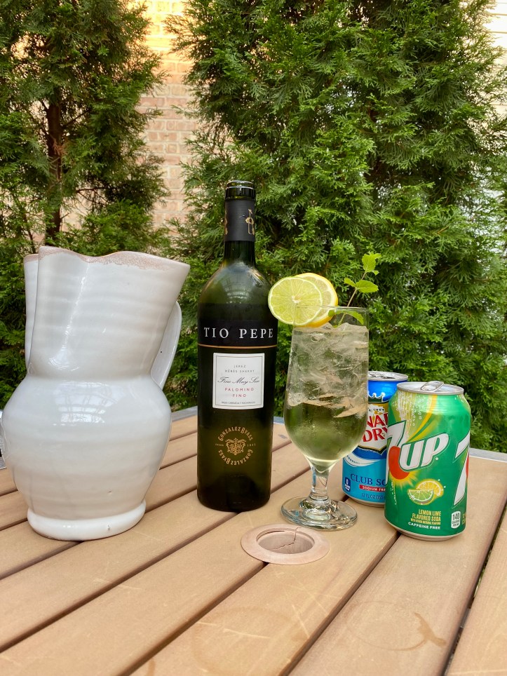 The Tiojito This recipe is easily batched for a crowd, or you can make individual drinks. Combine 1/3 Tio Pepe Sherry with 2/3 Sprite or Seven-Up over ice, and garnish with lemon and lime wheels and a sprig of fresh mint. If you prefer a drier (less sweet style) add 1/2 ounce of fresh lemon juice and 1/2 ounce of fresh lime juice to your drink. You also can skip the lemon-lime soda and use sparkling water for a bone-dry spritzer.