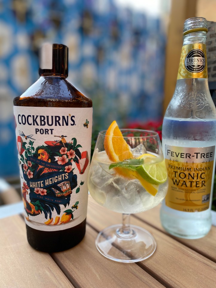 The Porto Tonico is ubiquitous all over Portugal (I had one a day… at least!) and here’s all you do: fill a stemmed balloon glass, large snifter or tumbler, with ice combine 1/3 Cockburn’s White Heights with 2/3 tonic water. Stir, and garnish with a slice of lemon, lime, sprig of mint and sigh with pleasure.