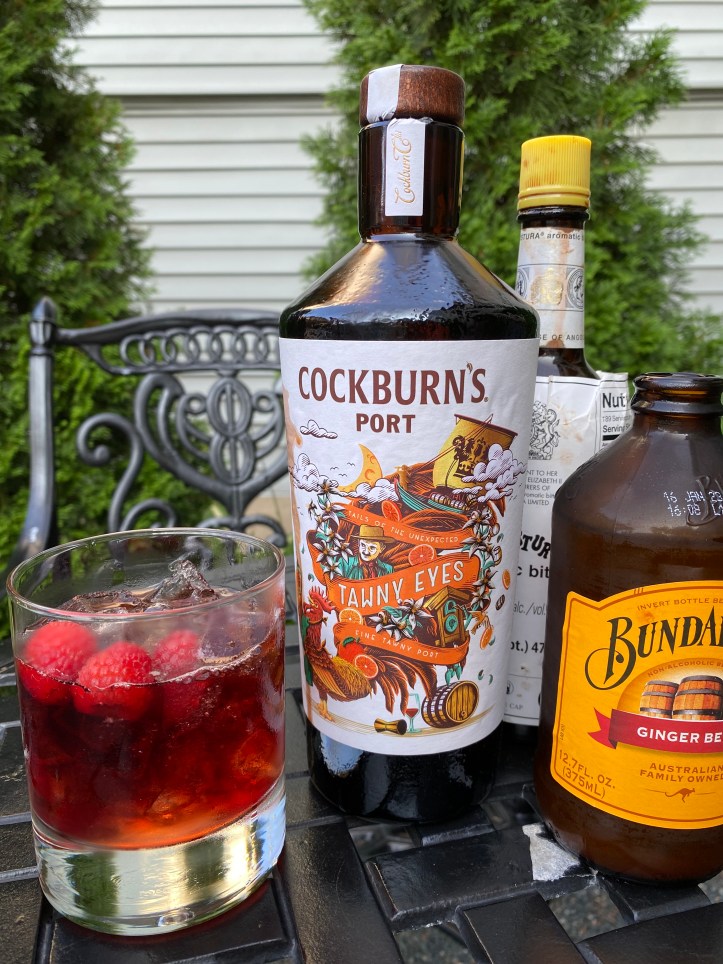 The Tawny & Ginger with Cockburn’s Tawny Eyes Port ($20) This is a real crowd-pleaser as evidenced by the number of requests I was getting of “Another one of those, please!” (I mean, who doesn’t love ginger beer, right?) Fill a rocks glass with ice and mix 1/3 Cockburn’s Tawny Eyes Port with 2/3 ginger beer. Add a few drops of Angostura Bitters and stir. Garnish with raspberries, blueberries and a sprig of fresh mint. With the honeyed red fruits and hint of vanilla in this port, it is perfection with the spicy ginger beer.