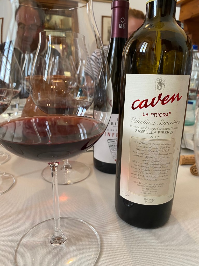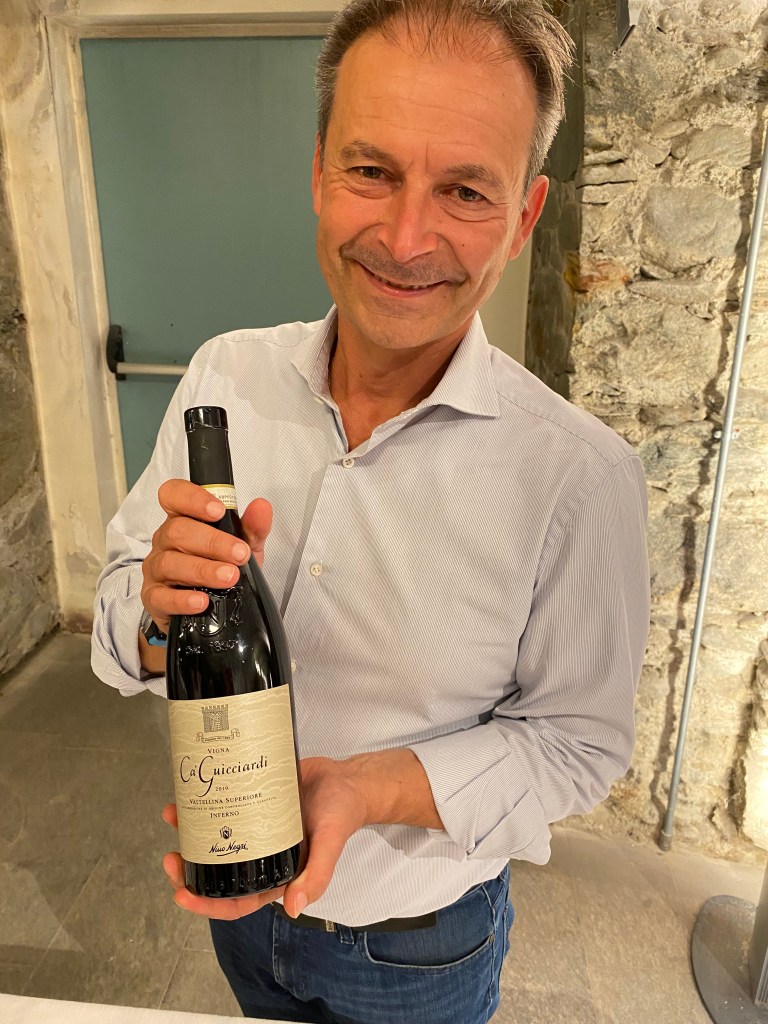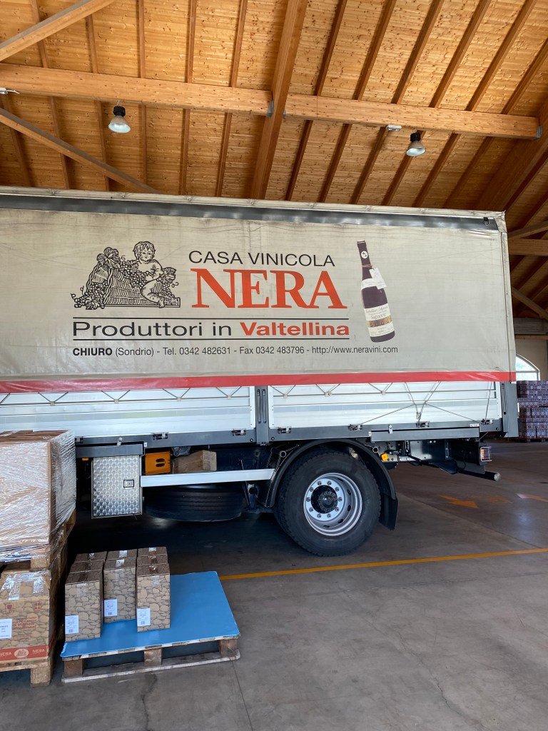 After a sumptuous lunch at Ristorante San Carlo – with wines from all three winemakers plus wines from Caven and Cantina Nera – we were handed off to the nicest man (and it is killing me that I cannot find his name in my notes!) from Caven and Cantina Nera, one of the largest producers in Valtellina. Nera is run by the three grown grandchildren of the founder, Pietro Nera,.Today, Simone, Stefano and Angela Nera are turning out beautiful Chiavennasca (aka Nebbiolo) wines plus Sforzato wines – the local term for wines made from dried grapes (aka Amarone, from Valpolicella in the Veneto).
