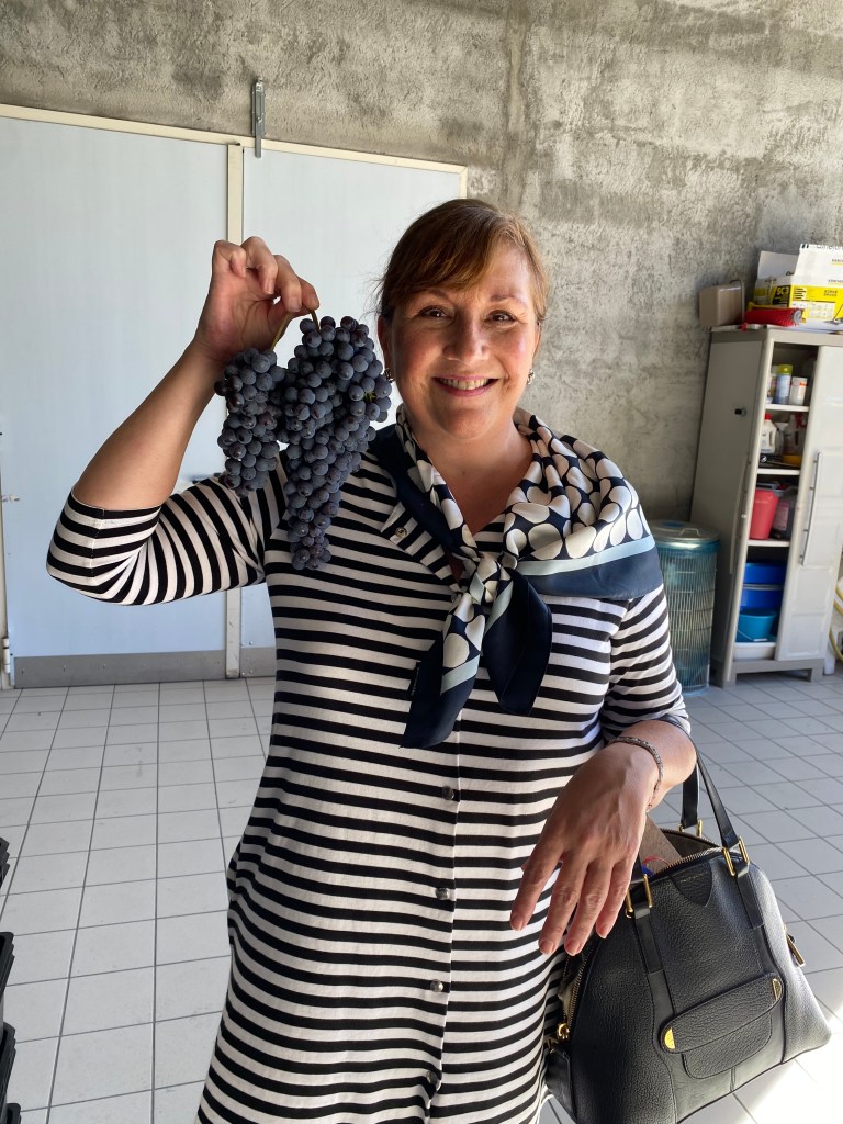 Fabbio’s Agrilu wines, Emilio’s Cantina Riter wines and Dario’s biodynamic Le Campelline wines were – in a word – amazing. These wines are expressive, balanced and wake up the palate with bold fruit, minerality and satiny tannins. Production is tiny, distribution is only local (right now) and the hospitality is unforgettable. I can’t tell you how warm and inviting these winemakers are! Before tasting, we spent time with Fabbio, climbing up into the steep, terraced vineyards, where I clung to posts and couldn’t imagine navigating those rocky hills with even my own purse, much less a basket of grapes on my back! It was an unforgettable experience.