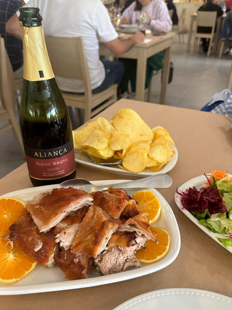EAT Rui recommended a local restaurant for the region’s speciality: suckling pig, which everyone pairs with the local sparkling wine (hence our new phrase, “Sparkling Pig”). Restaurant Julià Duarte restaurant is about 15 minutes away and IT. WAS. PERFECT! It was busy for Sunday lunch, but you know what? They take your name, point you over to the lady pouring glasses of sparkling wine and then another lady hands you a plate of local cheese and ham and you wait it out on the patio. And the cost of this gracious hospitality: nothing!