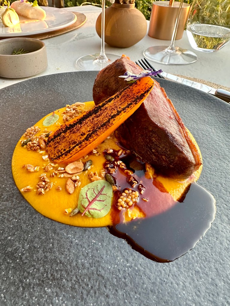 EAT & DRINK The Octant Douro is an ideal landing spot (about an hour from Porto) and we were ready for a day of rest and relaxation. Definitely book a wine tasting (25 euros), at which you’ll taste “Three Ages of Douro,” starting with that Vinho Verde – bright and prickly on the tongue, with tangy acidity and bright citrus and green apple flavors, progressing to their private label Touring Nacional, the signature grape of The Douro (yes, yes yes!! I loved it so, so much. One sniff and I got a tidal wave of black fruit, plum jam, Earl Grey tea, chocolate, vanilla and more. We finished with Maynard’s 20-Year Tawny port dramatically poured out of a one-gallon bottle. (The Octant has 150 port wines on their wine list).