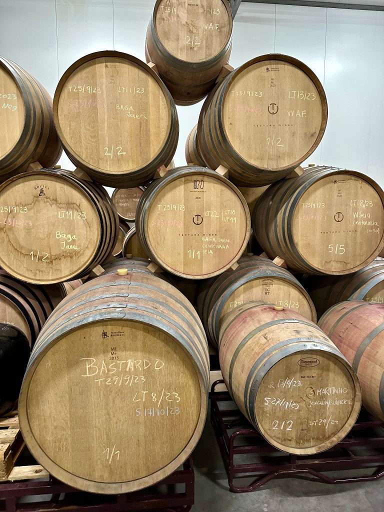 I love Rui’s approach to farming, making wine and supporting his community. He started a “Reused Bottle Series,” to use fewer new glass bottles, he does not till his vineyards, and harvest draws his entire community near Coimbra to pick and process the grapes. He uses barrels that are made from local woods (eucalyptus, acacia and chestnut) and even has a giant Brazilian mahogany for aging red wines.