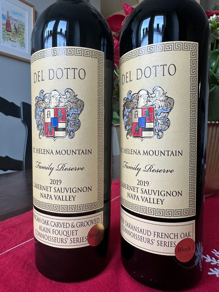 Del Dotto This Napa Valley family-owned winery has a very cool approach to aging wines. They experiment with a wide array of barrels to age their Cabernet Sauvignon wines, and I received two samples: both 2019 Cabernets: one aged in an American Oak Fouquet barrel and the other aged in a Taransaud French Oak barrel. Wow! So freaking fun to taste!